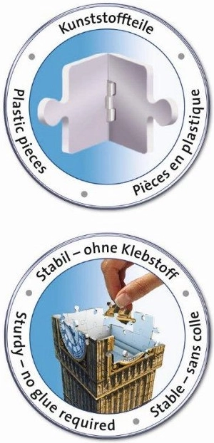 Hozz létre részleteiben kidolgozott londoni Big Ben modellt ezzel a csodálatos 3D kirakóval a Ravensburger márkától. A speciális ívelt vagy hajlítható daraboknak köszönhetően, amelyek pontosan illeszkednek a helyükre, könnyedén megépíthetők híres épületek modelljei ragasztó nélkül. Minden darab szilárd műanyagból készül, ami kiváló stabilitást biztosít az egész szerkezetnek.
