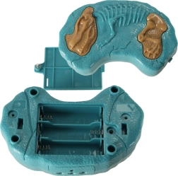 A fosszíliára emlékeztető távirányító két gombbal könnyíti meg a dinoszaurusz mozgásának és hangjainak irányítását.
