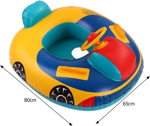 Az autó formájú gyermek felfújható kör tartósságot és biztonságot kínál a kiváló minőségű PVC anyagnak köszönhetően. Ideális segédeszköz a gyermekek vízi környezettel való megismertetéséhez. A forgatható kormánnyal és kürttel a kicsik még több szórakozást élvezhetnek, és a lábnyílással ellátott speciális ülés biztonságérzetet nyújt a gyerekeknek. Az élénk színek és az autó forma attraktivitást kölcsönöz a terméknek a gyermekek számára.