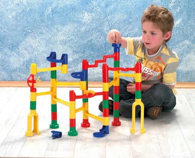 Ez a LENA márkájú golyópálya órákig tartó szórakozást biztosít a változatosságának és ötletességének köszönhetően. Ideális három éves kortól, és számos lehetőséget kínál a saját pályák megalkotására.