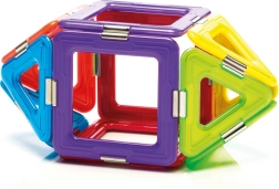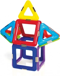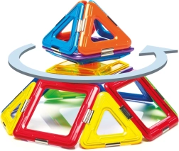 A készlet összesen 6 mágneses négyzetet, 8 háromszöget és 1 pörgettyűt tartalmaz, ami széles teret nyújt a kísérletezéshez. Ez a készlet nemcsak szórakoztató, hanem oktatási célokat is szolgál, és fejleszti a gyermekek készségeit, mint például a térbeli képzeletet, koordinációt, koncentrációt és kreativitást.