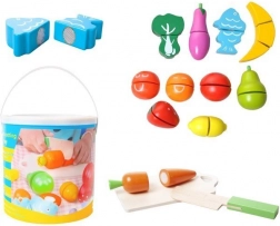 A színes, fából készült gyümölcsök és zöldségek kreatív játékra ösztönzik a gyerekeket. A szeletelés, összeillesztés és válogatás természetes módon fejleszti a mozgáskoordinációt, a koncentrációt és a szókincset.