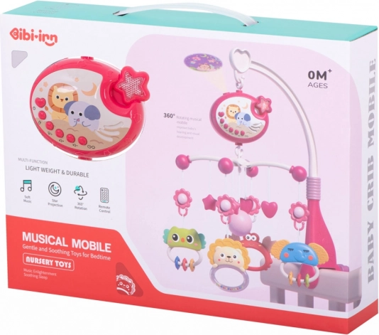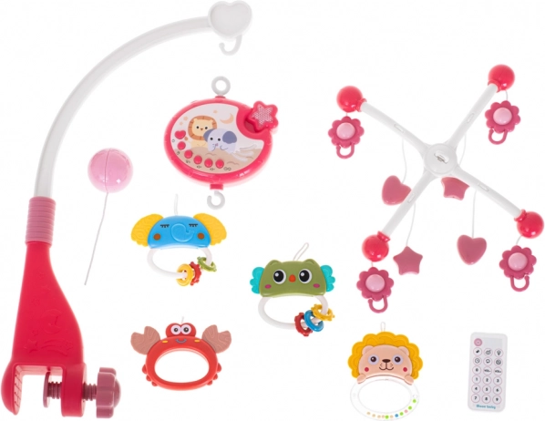 Zenei körforgó csillagvetítővel és távirányítóval a kiságyhoz – Rózsaszín