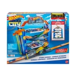 A Hot Wheels Stunt Garage az egyetlen garázs, amely lehetővé teszi az autók számára, hogy egyik szintről a másikra ugorjanak. Használd a liftet, hogy bármelyik szintre felvidd az autókat, ahol leparkolhatsz, vagy leugorhatsz az alsóbb szintre. Parkolhatsz a felsőbb szinteken, vagy „körutat” tehetsz lent. Tankolj és készítsd fel az autót a következő kalandra!