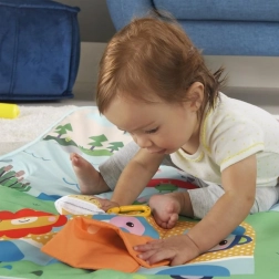 Ez a pihe-puha, tágas játszószőnyeg varázslatos kültéri mintával felkelti a kíváncsiságot és természetes módon támogatja a baba fejlődését. A mellékelt játékok hosszú időre lekötik a kicsit, miközben erősítik a nyak- és hátizmokat, és fejlesztik a finommotorikát.