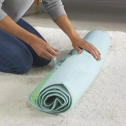 A szőnyeget egyszerűen feltekerheted, majd pántokkal rögzítheted a kényelmes hordozáshoz. A gondozás gyerekjáték – az anyag gépben mosható.