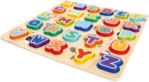 Ez a színes, 26 betűből álló kirakó segít a gyerekeknek természetes módon elsajátítani az angol ábécét és a szókincset a kedves állatillusztrációkon keresztül. Minden betűnek saját kivágása van, alatta kép és az állat angol neve, így a tanulás játékká válik.