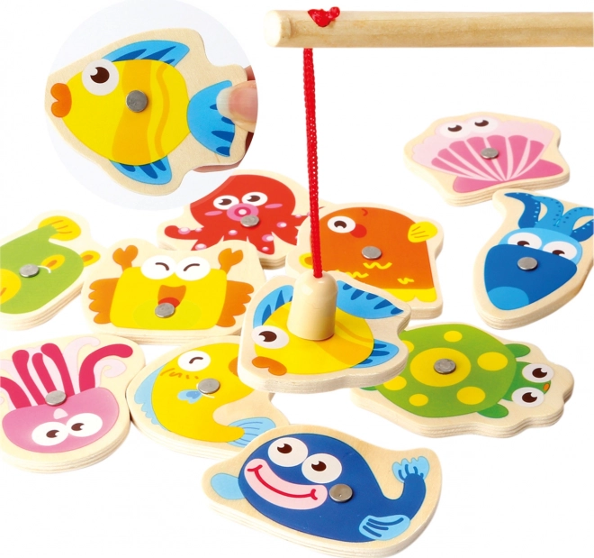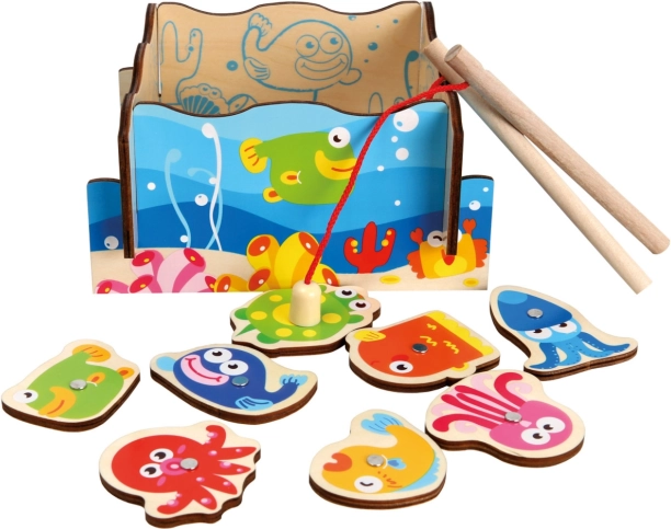 Ebben a játékban az a cél, hogy mágneses horgászbottal a lehető legtöbb tengeri állatot fogd ki. A szépen díszített, négyrészes háttér díszlet víz alatti hangulatot teremt, amelyet a gyerekek önállóan vagy egy baráttal kettesben is élvezhetnek.