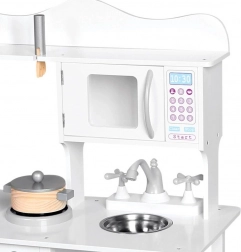 Fedezze fel a főzés világát az Amélie fa játékkonyhával, ideális a kis szakácsoknak és szakácsnőknek, akik szeretnek főzősdit játszani. Ez a konyha a következőket kínálja: