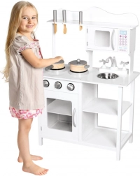 A konyha mosogatót, tűzhelyet és mikrohullámú sütőt tartalmaz a teljes játékélményért.