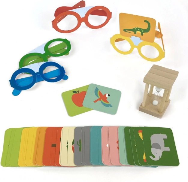 - 4 szemüveg kártyatartóval, homokóra, 50 illusztrált kártya