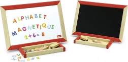 Multifunkciós asztali tábla gyerekeknek szórakozást és tanulást kínál. Kétoldalas mágneses fa alappal, amelyre krétával vagy speciális filctollakkal lehet rajzolni.