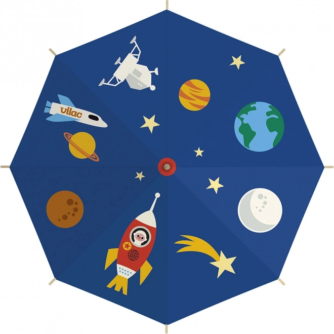 Fedezd fel az esős napok varázsát a VILAC Űrhajós gyerek esernyővel. A színes űrminta bolygókkal és rakétákkal szórakoztatóvá teszi az utat az óvodába vagy az iskolába, míg a masszív szerkezet megbízható védelmet nyújt az eső ellen. Az ergonomikus fa fogantyú jól kézre áll, és biztos fogást ad a gyerekeknek.