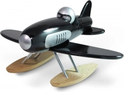 Ez a gyönyörű hidroplán a Vilac márkától magas minőségű, fekete lakkozott fából készült, nagy figyelmet fordítva a részletekre. Kiemelkedik stílusos retro dizájnjával, fém díszítésekkel és fa úszóival, amely nemcsak játék, hanem dekoratív elem is a gyerekszobába.