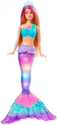 A Barbie Dreamtopia sellő tökéletes társ a fürdőkádba, a medencébe és a szárazföldi játékhoz is. Gyönyörűen kidolgozott farka vízbe merítve többféle effektben világít, így minden fürdés és történet varázslatos hangulatot kap. A fényeket víz nélkül is aktiválhatod a fűzőn lévő gomb egyszerű megnyomásával.