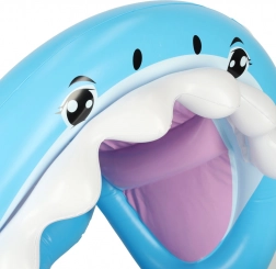 A vidám cápa dizájnú felfújható gyerek vízi fotel remek választás az első ismerkedéshez a vízzel medencében, folyóban vagy tóban. A levehető baldachin véd a naptól, míg a lábátvezetős ülés stabilan és kényelmesen tartja a gyermeket.