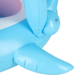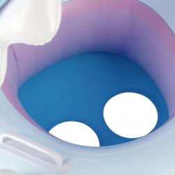 A cuki, cápa alakú felfújható ponton minden fürdést kalanddá varázsol. A árnyékoló baldachinnak, a kényelmes, lábnyílásos ülésnek és a praktikus kapaszkodóknak köszönhetően a kis vízi kalandor biztonságban és kényelemben élvezheti a pancsolást. Az strapabíró PVC egy egész, élményekkel teli szezont is bír. Maximális teherbírás 23 kg.