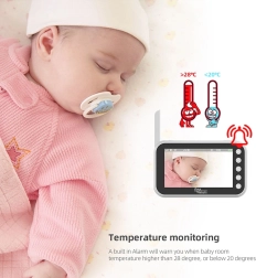 A kezelés maximálisan egyszerű és intuitív – fizikai gombok, áttekinthető menü és egyértelmű állapotikonok. A stabil vezeték nélküli kapcsolat és a minőségi mikrofon tiszta hangot biztosít felesleges zaj nélkül, míg a HD kép részletes rálátást ad az alvó vagy játszó gyermekre.