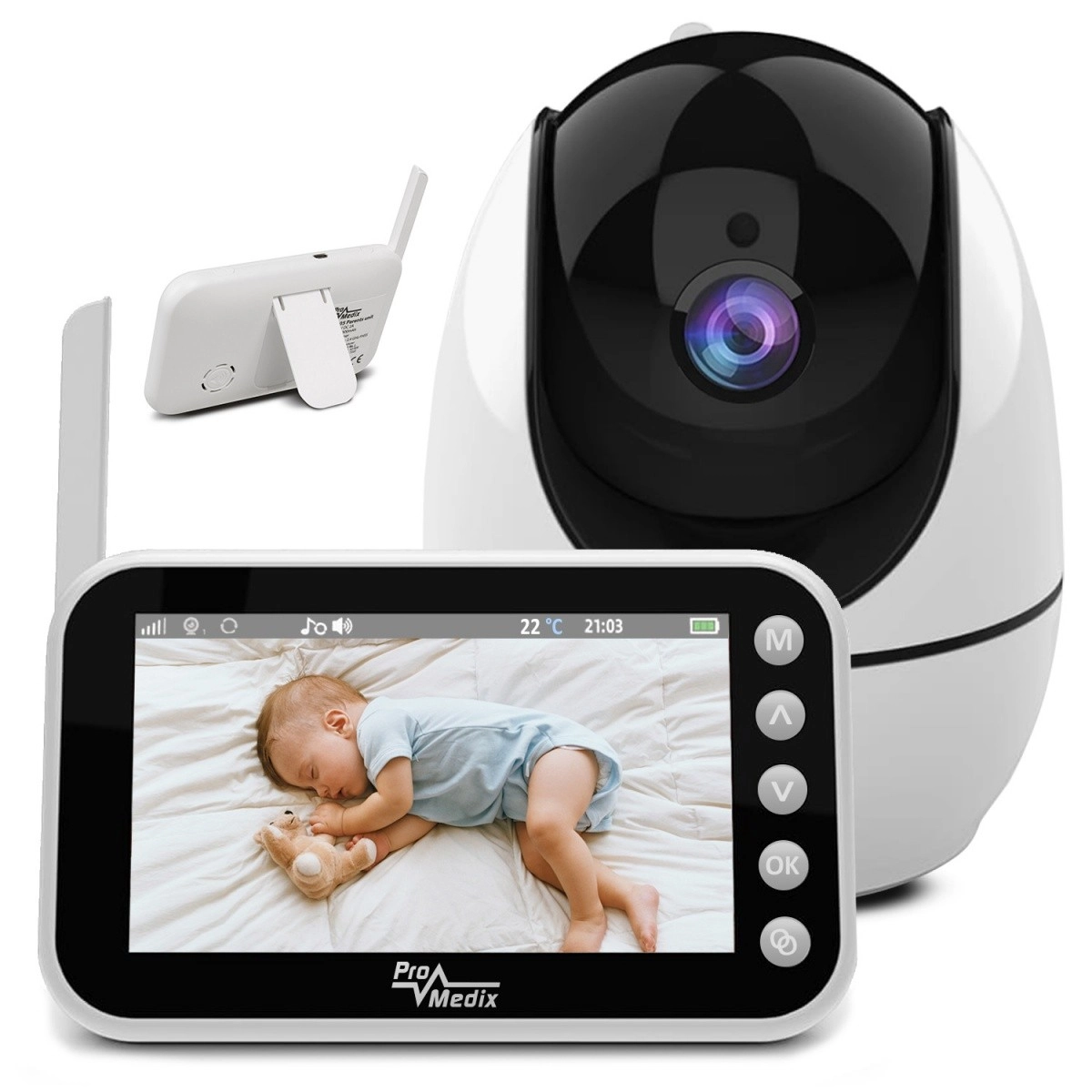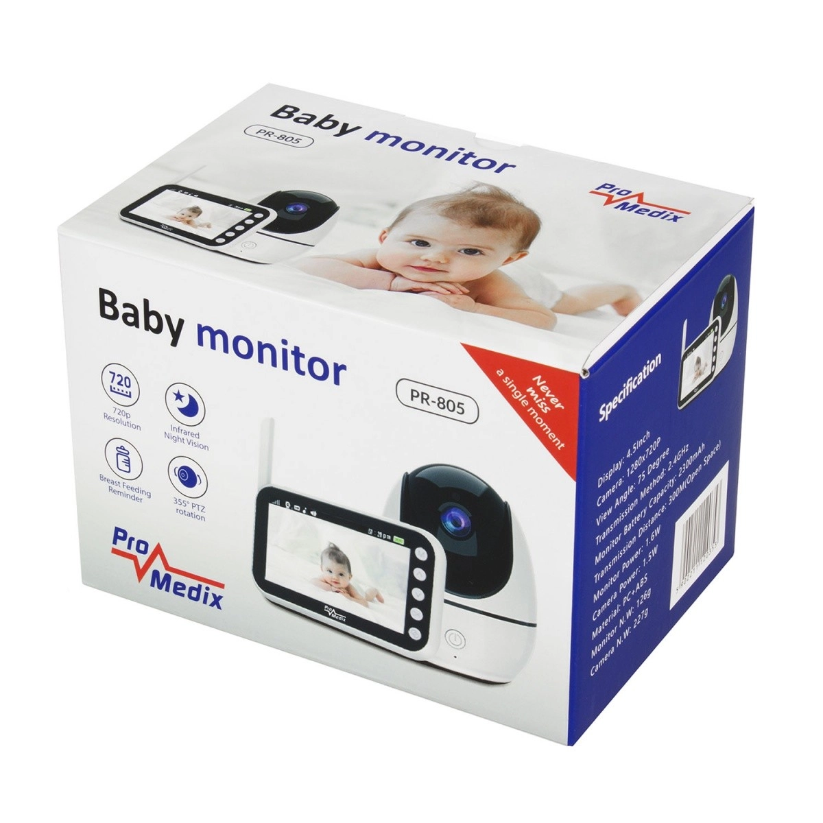 Tartsa szem előtt, mi történik a gyerekszobában a PROMEDIX PR-805 bébiőrrel. A hordozható szülői egység színes képe, a nagylátószögű forgatható kamera és az infravörös éjjellátó gondoskodik róla, hogy bármilyen körülmények között lássa és hallja kisbabáját. A kompakt méretnek és alacsony tömegnek köszönhetően a bébiőr könnyen hordozható, és nem zavarja meg a szoba nyugodt környezetét.