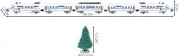 A mozdony és a kocsik méretei (hosszúság / szélesség / magasság): 60 / 2,5 / 3 cm