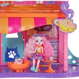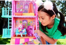 Lépj be az ENCHANTIMALS világába ezzel a varázslatos, 70 cm magas, háromszintes városi házzal, amely tele van játékos lehetőségekkel. Vár rád egy kávézó terasszal, nappali konyhával, hálószoba és tetőmedence, nem hiányzik az erkély, a tűzlépcső és a nyitható ajtó kisállat-ajtócskával. A szett tartalmazza Palmer Pomeranian babát (15 cm), kutyusát, Pommyt, valamint több mint 15 kiegészítőt a végtelen fantáziához és a kreatív játékhoz. Több játékrész, gazdag tartozékok és mesés dizájn – öröm minden kis mesemondónak.