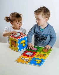 „Első állatkáim” habpuzzle-ünk remek módja annak, hogy a gyerekek megismerkedjenek különböző állatokkal, miközben fejlesztik motorikus készségeiket. Kialakításának köszönhetően puha játszószőnyegként is használható, könnyen tisztítható és egészségre ártalmatlan.