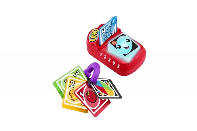 Ez az elektronikus fejlesztőjáték a Fisher‑Price-tól a kedvelt UNO élményét hozza el a totyogók világába. A kártya behelyezése után a talapzat felvillan, vidám dallamok és kifejezések hangzanak el, amelyek természetes módon ismertetik meg a gyermeket a számokkal, színekkel és ismerős tárgyakkal. A forgatható, könnyen megfogható kártyák fejlesztik a finommotorikát és a koncentrációt.