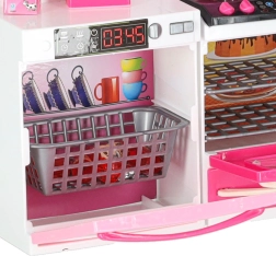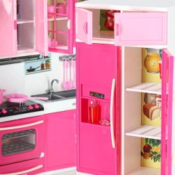 Ez a modern babakonyha elhozza a gyerekeknek a fantázia világát és a mindennapi tevékenységek utánzását. A négy összekapcsolt szegmens lehetővé teszi egy teljes konyha összeállítását minden fontos elemmel – a tűzhelytől sütővel a hűtőn és a mosogatón át. A LED-del megvilágított égők és a hangok valósághű élményt adnak a főzős játéknak.