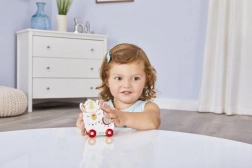 A játék négy működő kerékkel rendelkezik, amelyek megkönnyítik a kezelést és a mozgatást. Ideális a nagymozgások és a képzelet fejlesztésére már 12 hónapos kortól.