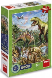 Fedezze fel a dinoszauruszok világát ezzel a csodálatos neon puzzle-val! Gyermeke élvezheti a szórakoztató kirakást neon elemekkel, amelyek a sötétben világítanak, és megjelenítik a dinoszauruszok körvonalait drámai hegyvonulat mellett.