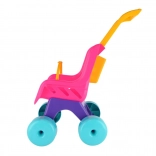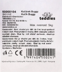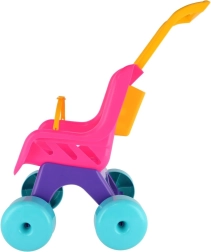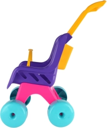 Ültesd be a babát, csatold be, és irány a séta! A Teddies Buggy Sport babakocsi rózsaszín–lila színösszeállításban támogatja a képzeletet és a mozgásfejlődést a mindennapi játék során. A strapabíró műanyag bírja a beltéri és kültéri használatot, a nagy kerekek pedig stabil és egyenletes gurulást biztosítanak.