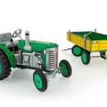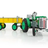 Ez az egyedülálló traktormodell egy kulccsal felhúzható rugós szerkezettel működik, ami autenticitást kölcsönöz a játéknak. A működő sebességváltó három előremeneti és egy hátrameneti fokozattal lehetővé teszi a gyermekeknek, hogy valósághűen játszanak a modellel. Kormánykerékkel vezethetik és használhatják a kéziféket a megálláshoz. Az 1:25 méretarány miatt ez a modell pontosan tükrözi a valódi traktor részleteit, így nemcsak remek játék, hanem gyűjtői darab is.