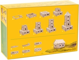 A Vario XL építőkészlet minőségi, 15 mm átmérőjű tömör bükkfából készül. A készlet 184 darabjának köszönhetően végtelen kreatív lehetőséget kínál. A dobozban mindent megtalál, ami különféle modellek összeállításához szükséges, beleértve a 9x9 mm keresztmetszetű fa léceket, orom- és tetőelemeket, ablak- és ajtókivágásokat kartonból, valamint papírnyomatokat a pontos részletekhez.