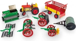 A készlet tartalmaz egy Zetor traktort műanyag keréktárcsákkal és kulccsal felhúzható mechanikus rugós szerkezettel. Három különböző előre sebességet, egy hátrameneti sebességet, semleges állást és kéziféket kínál. A tartozékok a következők: