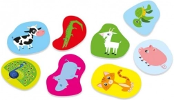 Szórakoztató és fejlesztő játék 12 hónapos kortól, amely fejleszti a logikát, a tapintást, a színfelismerést és a szókincset. A nagy, masszív kartonlapocskák egyszerű képekkel ideálisak az első tanuláshoz és a színek világának közös felfedezéséhez.