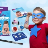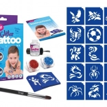 A nagyobb készletek több eszközt tartalmaznak: Mozgó szemek/öntapadós kövecskék: a kész mintát tovább díszítheted. Vigyél fel egy kis mennyiségű ragasztót az öntapadós kövecskékre, majd nyomd a bőrre.