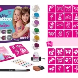 A nagyobb készletek több eszközt tartalmaznak: Mozgó szemek/öntapadós kövecskék: a kész mintát tovább díszítheted. Vigyél fel egy kis mennyiségű ragasztót az öntapadós kövecskékre, majd nyomd a bőrre.