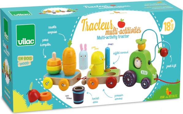 Multifunkciós húzható traktor Vilac szórakoztató és oktatási élményt kínál gyermekeinek. Ez a fa traktor tele van színes figurákkal és meglepetésekkel, amelyek fejlesztik a képzelőerőt és a motoros készségeket.