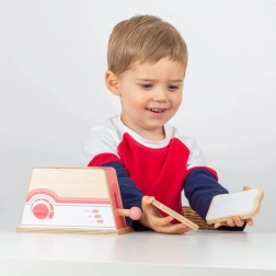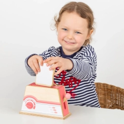 A kenyérpirító tartós fából készült, lekerekített élekkel a biztonságos játék érdekében. Minden gyerekkonyhába ideális.