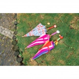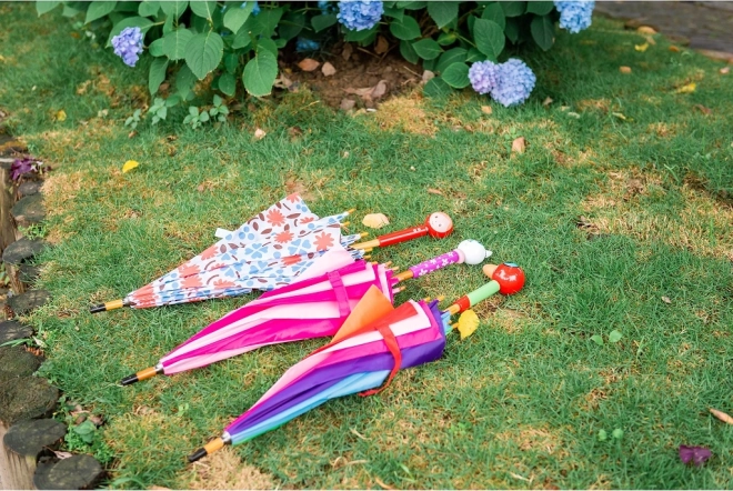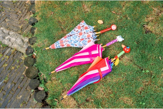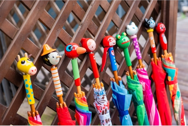 Az esernyő masszív fém vázra épül, ergonomikus fa fogantyúval rendelkezik, és a kicsi kezek számára is könnyű kinyitni és tartani. Körülbelül 75 cm-es átmérője megbízható fedést nyújt az eső ellen, anélkül hogy akadályozná a sétát.