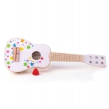 Fedezze fel gyermeke zenei tehetségét ezzel a minőségi, vidám csillagmintás fa gyerekgitárral. 6 hangolható nejlonhúr található rajta, strapabíró és könnyű a gyerekkezekhez, a csomag tartalmaz pengetőt és pót húrokat is. Remek, játékos belépő a ritmus és hangok világába, nagy hangsúlyt fektetve a biztonságra és a kreativitás fejlesztésére.