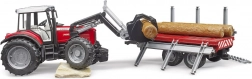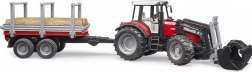 A BRUDER készlet az ikonikus MASSEY FERGUSON 7480 traktort hozza el homlokrakodóval és rönkszállítóval a maximálisan valósághű játékért. Az olyan működő részleteknek köszönhetően, mint a nyitható motorháztető, a kormányozható első tengely és a puha gumik, a gyerekek könnyedén megbirkóznak a rönkök rakodásával és szállításával.