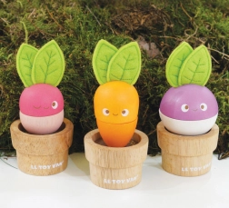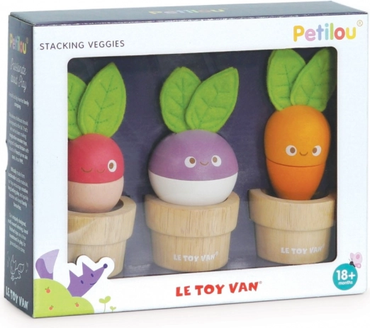 A LE TOY VAN bájos fa virágcserép-készlete zöldségekkel fejleszti a finommotorikát, a kéz–szem koordinációt és a képzelőerőt. A gyerekek keverhetik és összeilleszthetik az egyes elemeket sárgarépává, retkévé és céklává, vagy saját kombinációkat alkothatnak. A játék fenntartható fából készül, filc levelekkel rendelkezik, és kézzel utánfestett, vízbázisú, nem mérgező festékekkel.