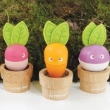 • 3 aranyos zöldség: sárgarépa, retek, cékla – mindegyik fa virágcserépben