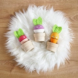 3 fa virágcserép, cserélhető részekkel ellátott zöldségek (sárgarépa, retek, cékla) filc levelekkel