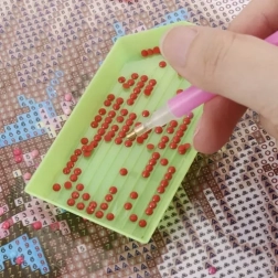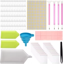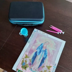 Ez a praktikus készlet megkönnyíti minden gyémántfestés-rajongónak a rendszerezést és magát az alkotást is. Minden biztonságosan helyet kap a masszív, strapabíró, cipzárral ellátott tokban, beleértve a habbetétben áttekinthetően elrendezett üvegcséket és a kiegészítőknek szánt hálós zsebet. Ennek köszönhetően minden kő és eszköz mindig kéznél van és tökéletesen szétválogatva.