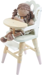 A fa etetőszék babáknak ideális lehetőséget kínál a gyerekek képzelőerejének fejlesztésére és a szerepjátékokba való bevonásra. Stílusos designjával, díszítő részleteivel és kiváló kidolgozottságával valósághű élményt nyújt. Az etetőszék alkalmas plyüsállatok és babák számára akár 35 cm-ig, és jól kiegészíti a Honeybake kollekció egyéb kiegészítőit, mint a Sleigh ágy és a Sweet Dreams babakocsi.