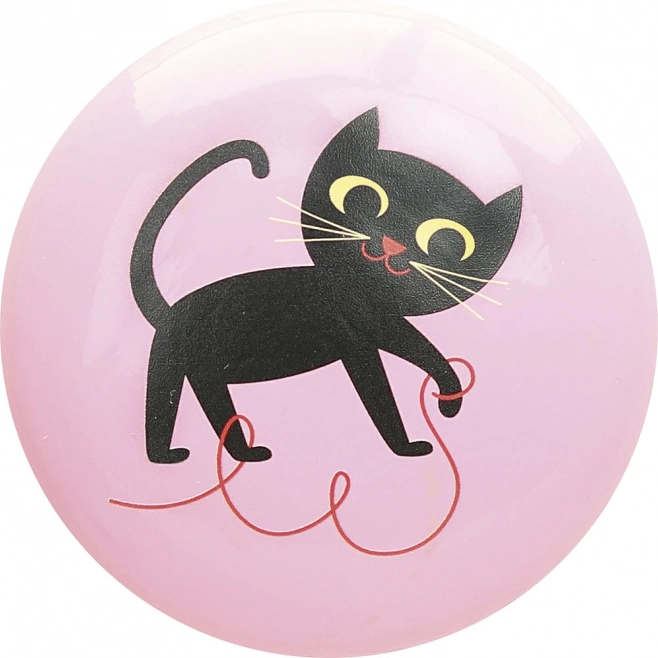 Rózsaszín fogas játékos fekete macska dizájnnal, amely örömet hoz minden gyerekszobába.