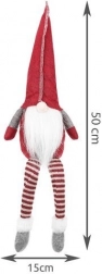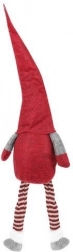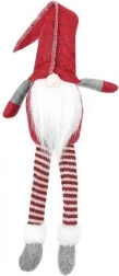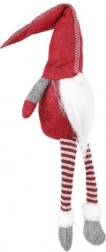 A hosszú piros sapka, a fehér szakáll és a csíkos lábak azonnali karácsonyi hangulatot teremtenek bármelyik szobában.