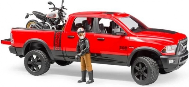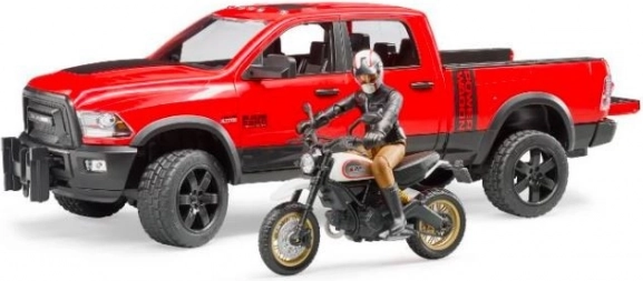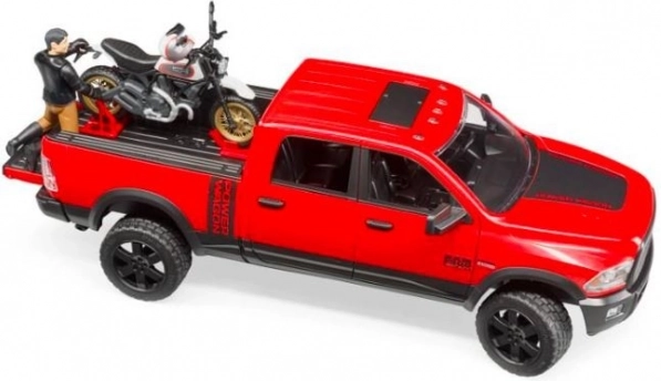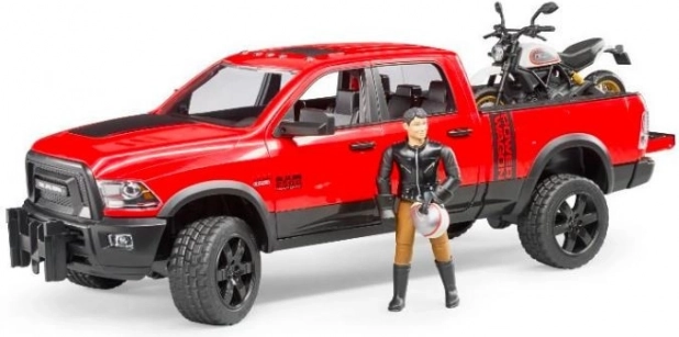 - Ram pick‑up, Ducati Scrambler motorkerékpár, sofőrfigura
